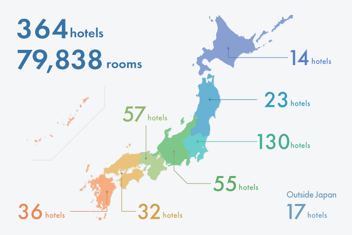 東橫INN的飯店網路遍布日本全國。在海外也已拓展至韓國、菲律賓等 5 個國家。 以全球 364 個據點 為網路,東橫INN作為「基地型飯店」,每天支援著眾多人的出行。