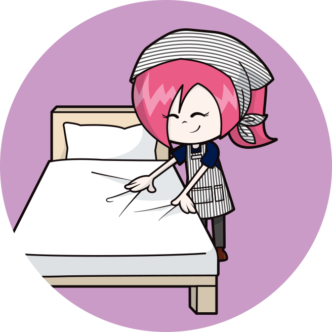 ベッドメイクなどの客室清掃業務を行う